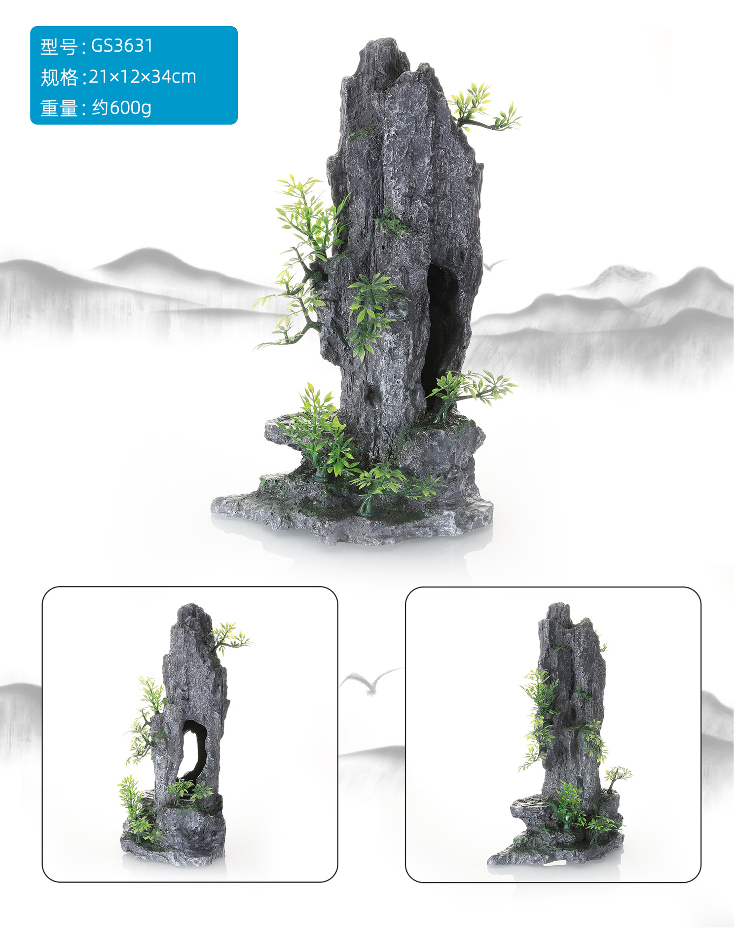 Realistic Beautiful Hills - Beautiful and realistic feel, close to real stone color. Features realistic rock and green plants on the rock surface. Add a touch of natural feel to your fish tank
